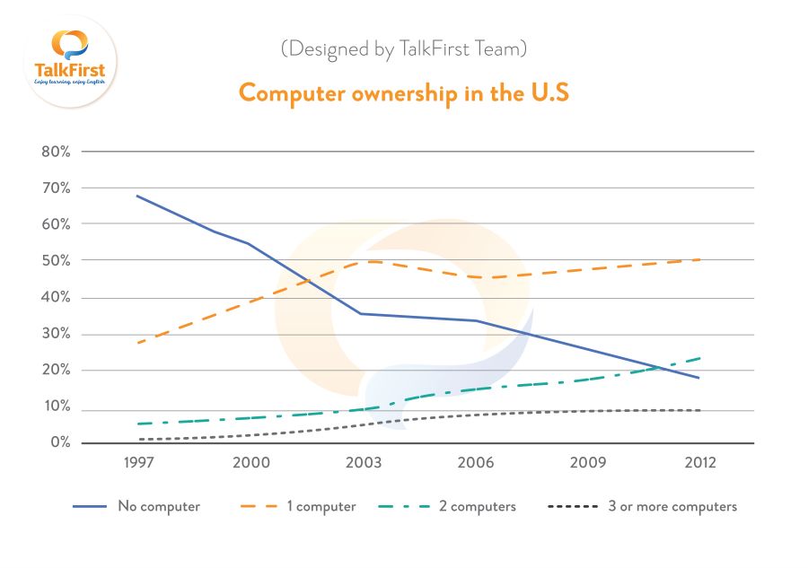 Task 1: The chart below gives information about computer ownership in the US from 1997 to 2012.