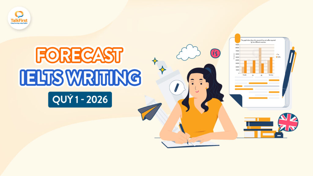 Bạn đang chuẩn bị cho kỳ thi IELTS Writing trong giai đoạn đầu năm và muốn nắm bắt những chủ đề có thể xuất hiện trong Tháng 1, 2, 3, 4 năm 2026? Trong bài viết này, TalkFirst chia sẻ bộ Forecast IELTS Writing Quý 1 2026 – Được cập nhật liên tục và sát sườn nhất, giúp bạn có định hướng ôn luyện hiệu quả cho giai đoạn nước rút này. Cùng khám phá ngay những xu hướng đề thi khởi động năm 2026 và cách tiếp cận để tối ưu hóa điểm số phần thi Writing nhé!