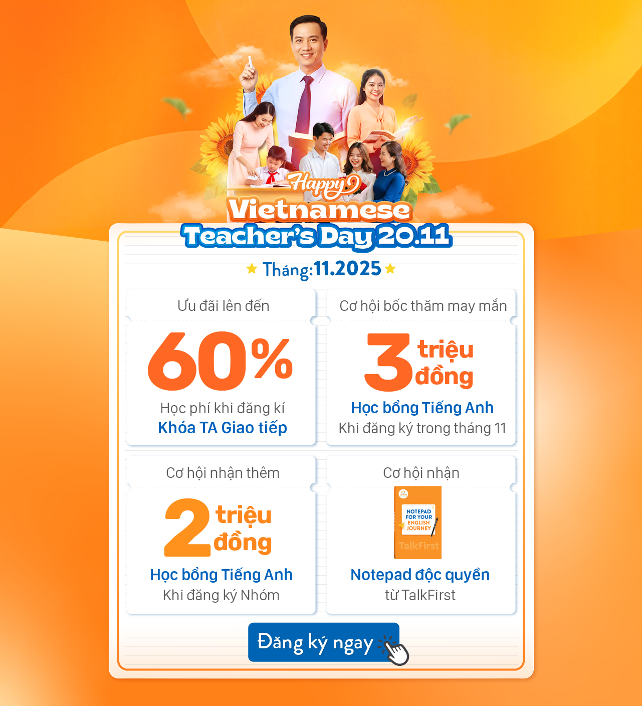 Nhờ sự hướng dẫn tận tâm của thầy cô và không khí học tập tích cực, em ngày càng tự tin hơn, khả năng phản xạ linh hoạt hơn, và mỗi buổi học đều mang đến niềm vui. TalkFirst đã giúp em cải thiện kỹ năng giao tiếp, mở rộng tư duy và biến tiếng Anh trở thành một phần không thể thiếu trong cuộc sống. Em vô cùng biết ơn sự hỗ trợ của ban giám hiệu và các thầy cô trong suốt hành trình này. Nếu có ai thắc mắc vì sao em có thể nói tiếng Anh trôi chảy như vậy, em sẽ không ngần ngại giới thiệu TalkFirst là nơi tuyệt vời để rèn luyện và chinh phục ngôn ngữ này.