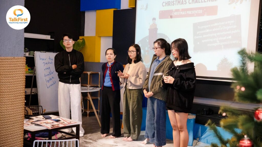 Đặc biệt, TalkFirst thường xuyên tổ chức các sự kiện lớn như Halloween Festival, Christmas Event, Mid-Autumn Event,… Ở các sự kiện này, học viên sử dụng 100% tiếng Anh để giao tiếp, giải đố các trò chơi,… Từ đó, học viên sẽ hiểu hơn về văn hóa các nước trên thế giới, bổ sung thêm vốn từ vựng và được rèn luyện khả năng giao tiếp tiếng Anh tự nhiên,…