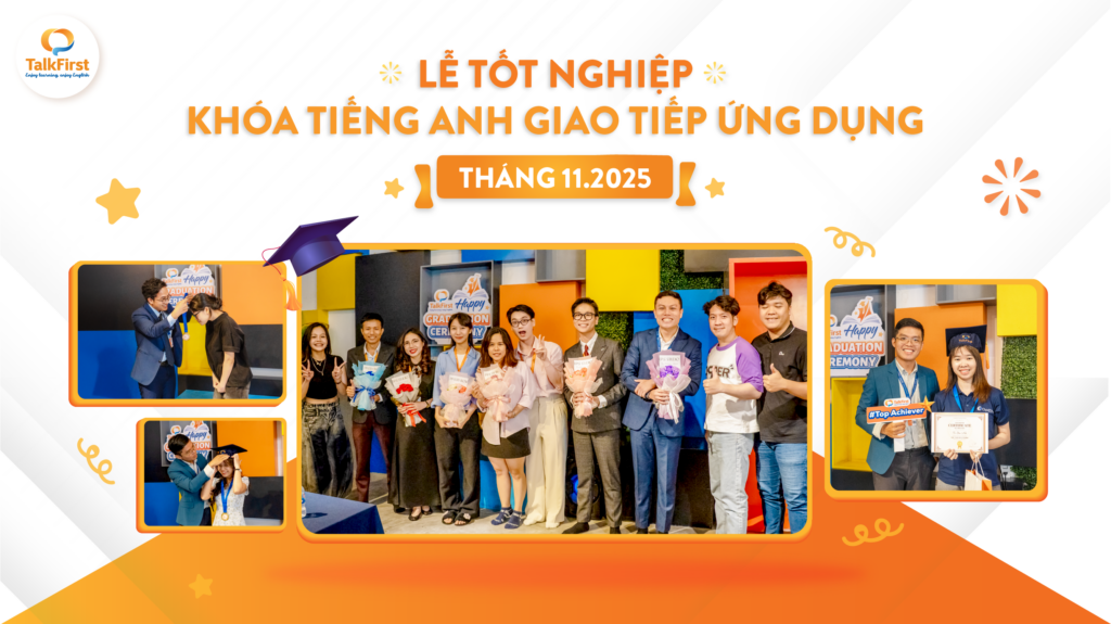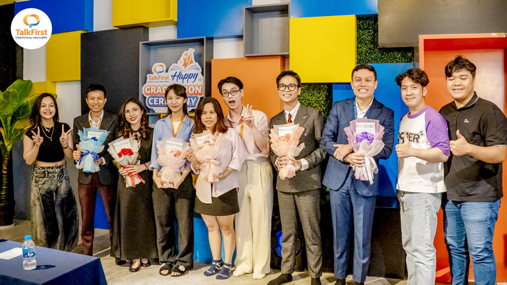 Hòa trong tinh thần tri ân ấy, Graduation Ceremony tại TalkFirst không chỉ ghi nhận những nỗ lực của quý anh chị học viên trên hành đường chinh phục Anh ngữ, mà còn trở thành khoảnh khắc để anh chị lan tỏa lòng biết ơn sâu sắc đến đội ngũ giáo viên TalkFirst – quý thầy cô luôn âm thầm đồng hành, truyền động lực và tạo nên một môi trường học tập đầy cảm hứng.